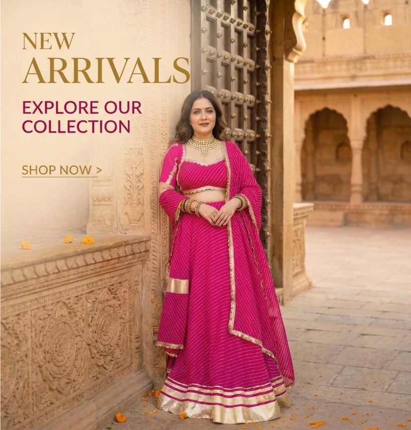 Rani Pink Leheriya Lehenga with Gota Patti Work | Rani Pink