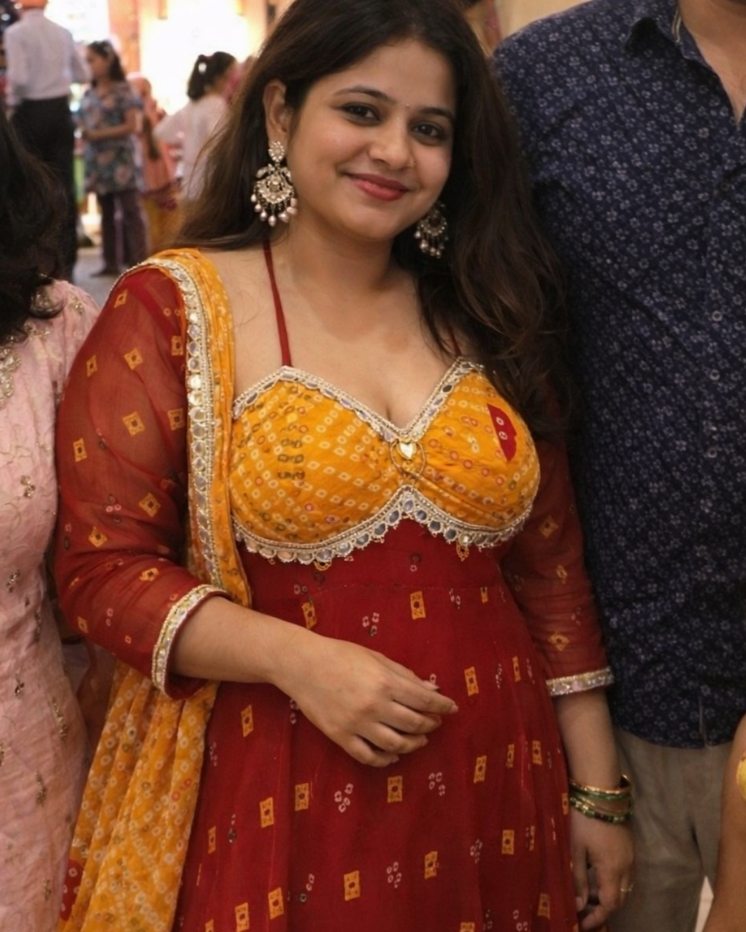 Red Bandhani Mirror Work Anarkali | Red