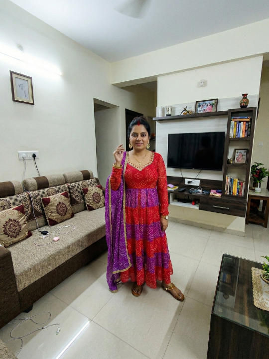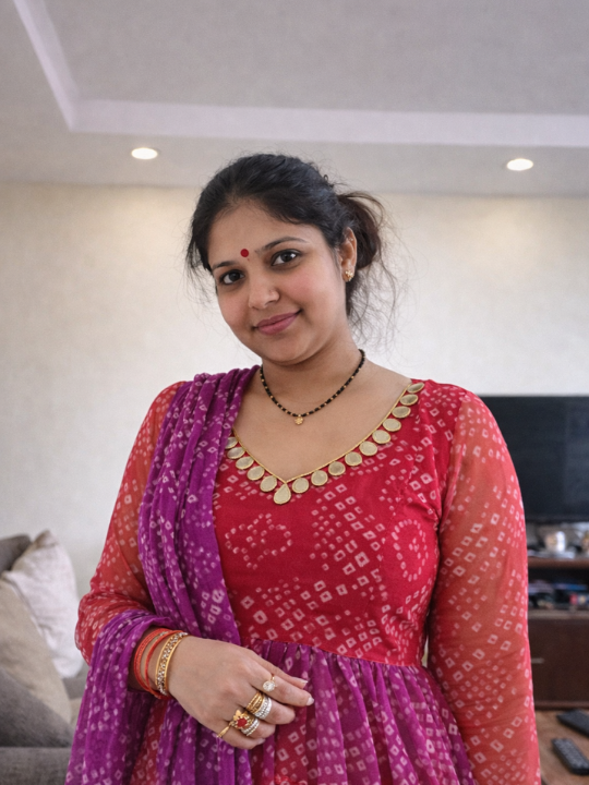 Dual Shade Purple and Red Bandhani Anarkali Set | Red