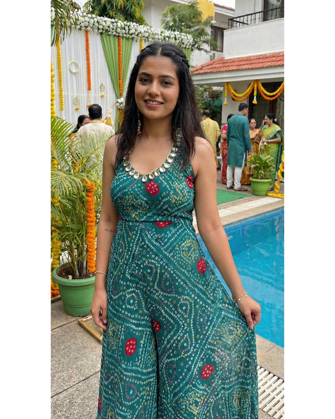 Mirror Glow Green Bandhani Statement Jumpsuit